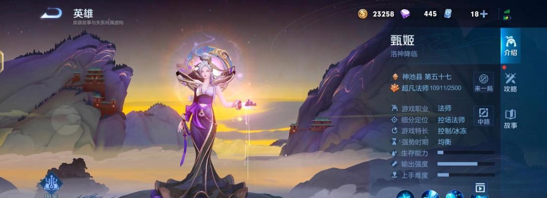 甄姬作为王者荣耀中的法师英雄,以其高爆发和控制能力成为玩家们钟爱的选择之一。本文将详细介绍甄姬单法师打法的出装攻略,帮助玩家更好地使用甄姬,在战场上施展才华。