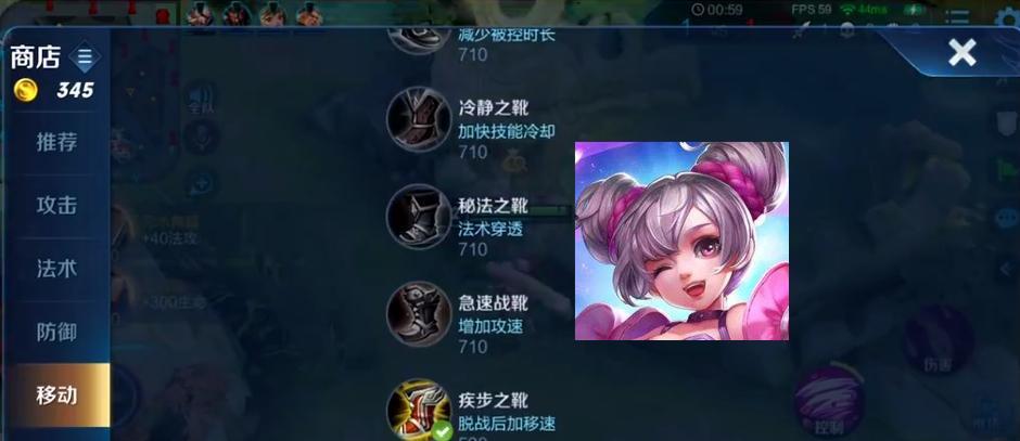五、次要装备之光速鞋:提高小乔的移动速度,增加机动性和躲避能力
