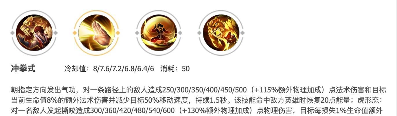 在技能加点上,裴擒虎的优先顺序是1级加点二技能“虎砲”,2级加点一技能“千钧棒”,3级加点三技能“飞燕在天”。这样的加点顺序可以在短时间内快速提升裴擒虎的输出和生存能力。