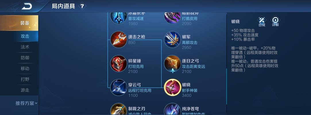 作为一个ADc英雄,狄仁杰在游戏中通常需要辅助英雄的保护和支援。选择一些具有护盾、加速和控制效果的辅助装备是明智之举。我们可以根据队友的情况选择“红BUFF”、“不死鸟之眼”和“暗影战斧”等装备来提高狄仁杰的生存能力和作战效果。