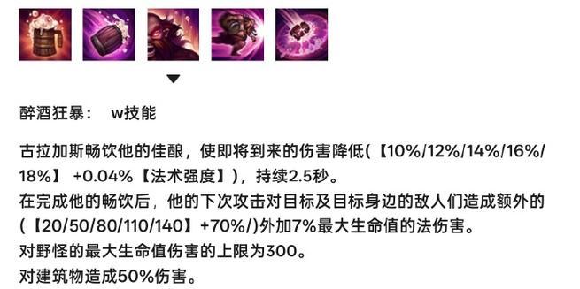 酒桶的四个技能各有特点,并且在游戏中扮演着不同的角色。本段将详细解读酒桶的核心技能,包括技能效果、施放顺序以及技能加点的建议。