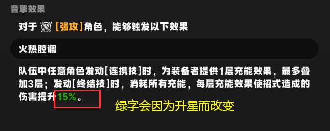 升星后,音擎效果中的绿字部分数值会改变,非绿字不会改变。
