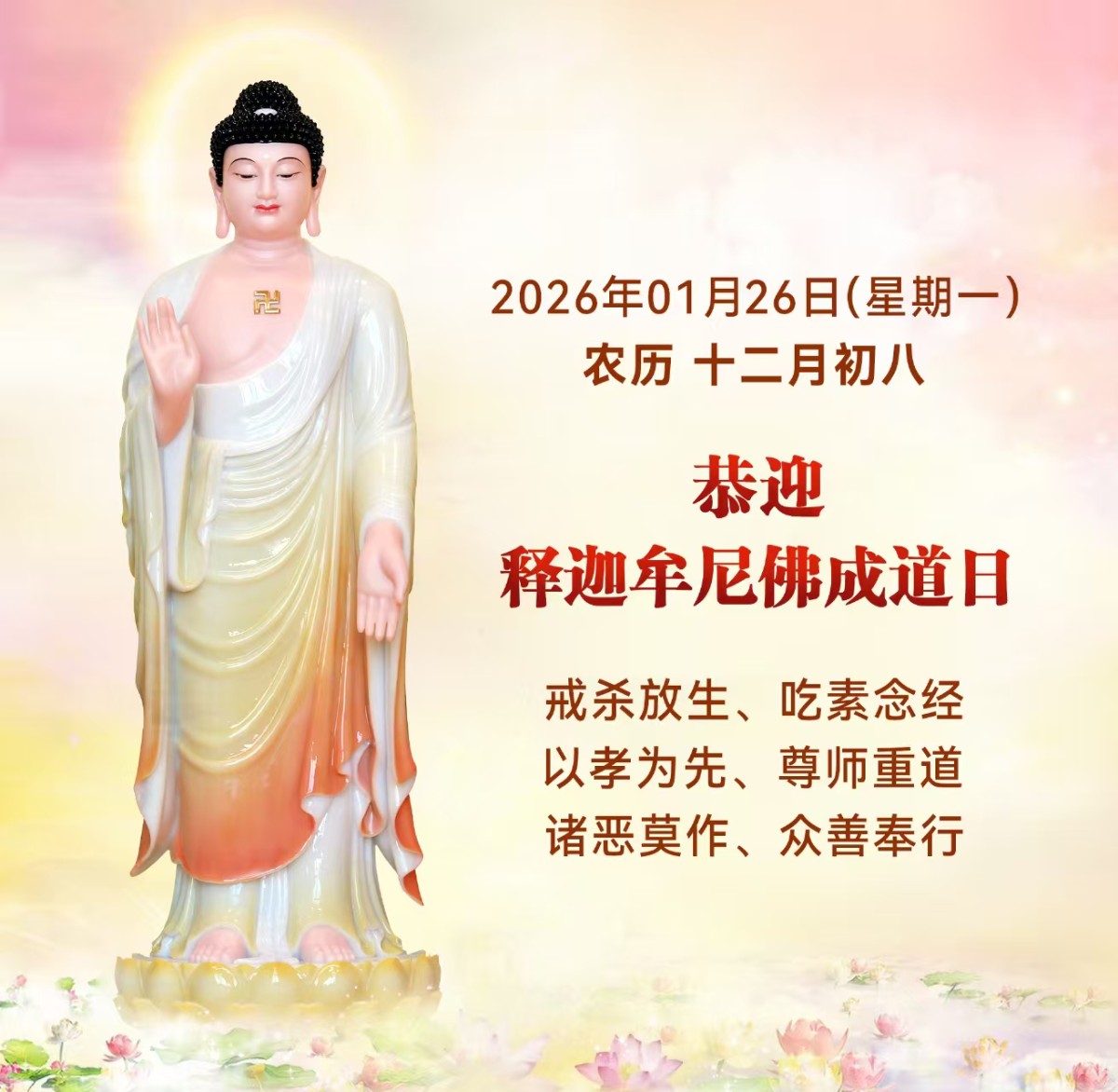 【温馨提示】2026年01月26日人天导师南无释迦牟尼佛成道日