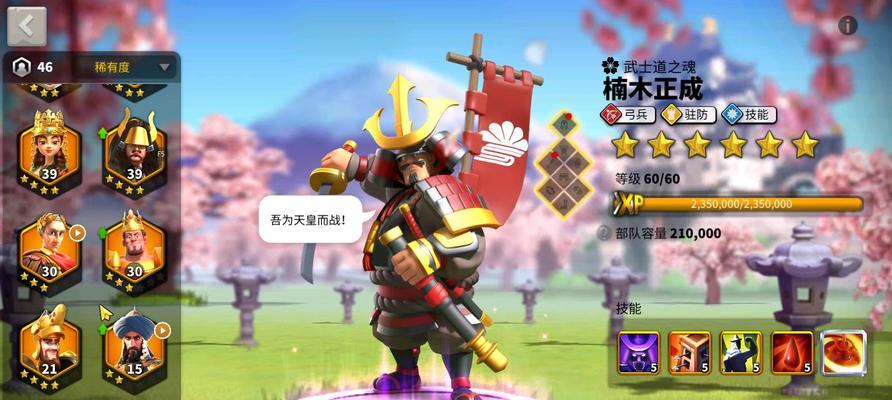 本多忠胜是一位出色的军阀,在他的领导下,你可以让军队更快地升级。使用升迁技能可以使士兵们得到更好的训练,从而让他们变得更加强大。
