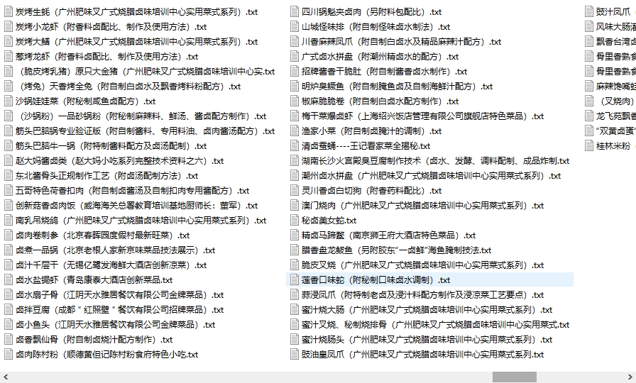 ●全国各地卤制品,腊味,白切,酱肉322项(收藏复制到文件夹的时候,有出现重复,文件夹内搜副本,然后批量删除就可以将重复资料清除掉)