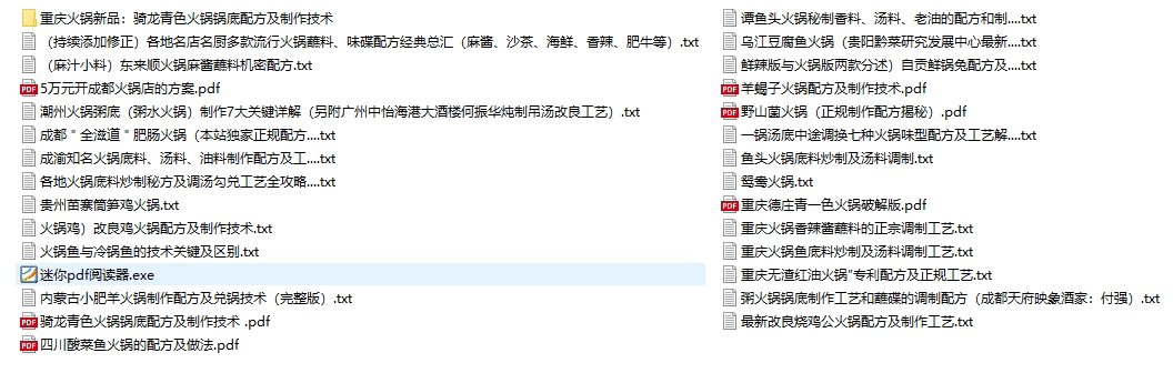 ●民以食为天,不说做饭多好吃也算是家里掌勺的,平日里也喜欢弄些不同口味是吃食,试过临时找菜谱,也试过下载美食App,终究还是收集起来比较实在,说来也懒收集倒是不少,尝试的还略有些不够看的,这快过年了把自己收集起来的分享给大家一起尝试一下,配方都是非常详细的,做法步骤也描述清楚,动手跟着来基本都成,有文本格式,有PDF格式 ,也有少量视频。