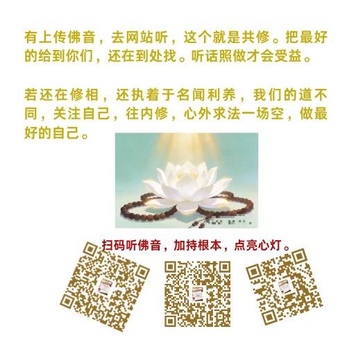 所以,师父经常告诉你们,在人间好好修,师父讲“好好修”,让你们修正自己的思维,修正自己的心念,修正自己的心灵。佛法不假于人,如果是假的,你们要去看他讲的有没有佛法,师父一直以来跟你们讲的都是白话佛法,教你们怎么去领悟人生真谛。师父为什么选择用法音来传递给你们这些孩子做开示?你们要知道,每个人的心灵很重要,我们心XIN灵LING法门的妙法就是用六大法宝佛法真谛来帮你们找到真我本性,真我佛性。