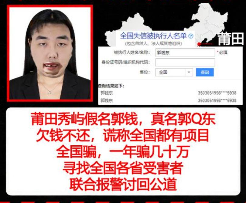 假名"郭钱",真名郭q东,骗了40w