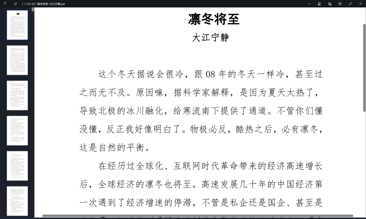 凛冬将至——大江宁静