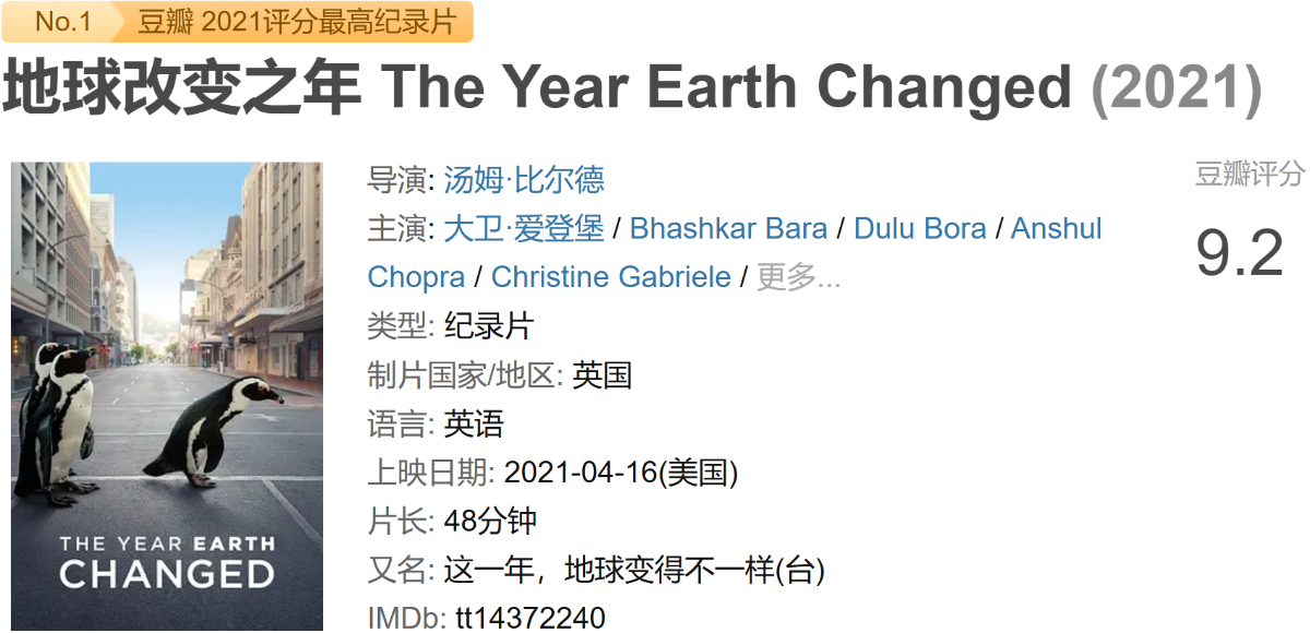 [纪录片]【地球改变之年】4K臻彩杜比视界 2021年评分最高纪录片-献给地球的暖心情书(夸克)