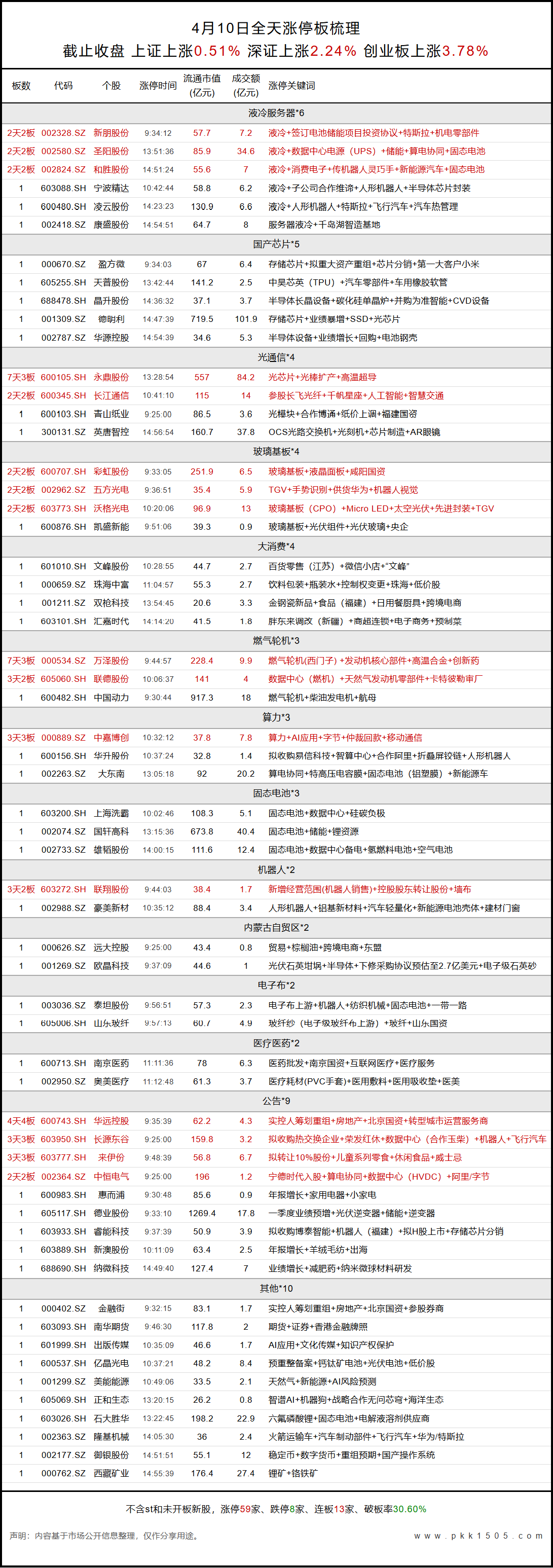 4月10日涨停板梳理