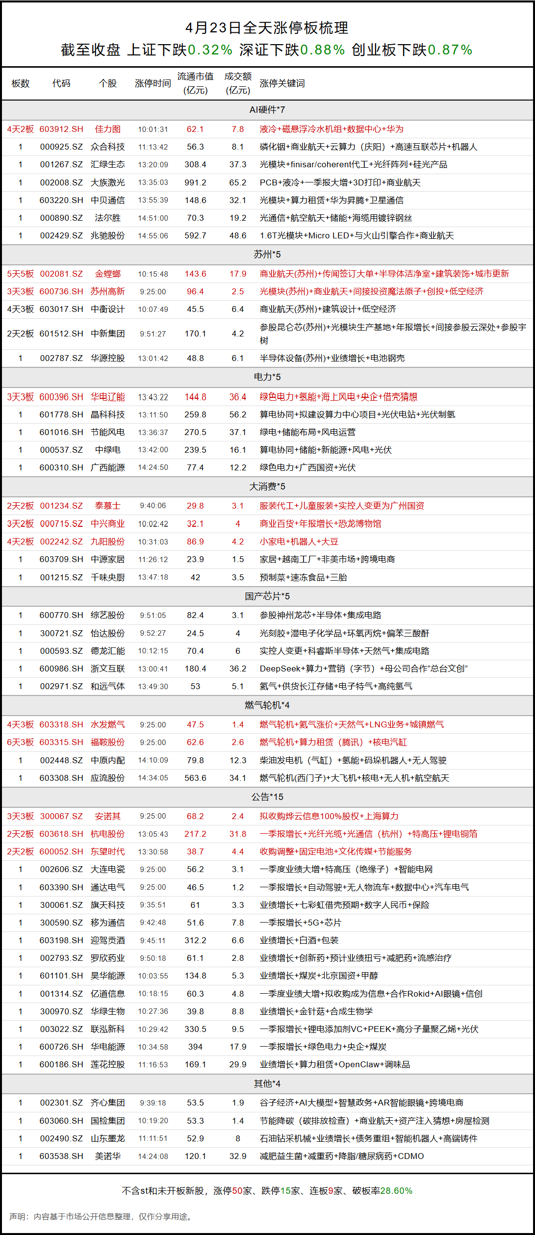 4月23日涨停板梳理