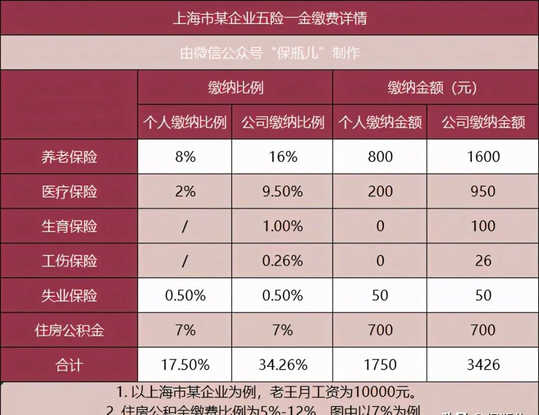 知道了基数,接下来就得看比例了。个人和公司的比例是不一样的,而且不同地区可能会有细微差别,不过大体上差不太多。下面给大家列个常见的比例表,你可以参考一下: