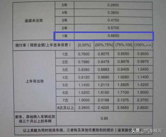 这是影响保费最厉害的因素。咱们用表格看看出险次数对保费的影响(以 10 万左右的车为例):
