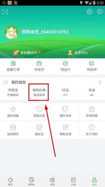 程程旅行 APP首页底部 “我的”→往下滑 3-5 个模块进入 “我的” 页面后,别光看顶部,往中间偏下的地方找,图标一般是蓝色或白色,写着 “程程白条”要是没找到,先检查账号是否登录、APP 是否更新,这两个点最容易出问题