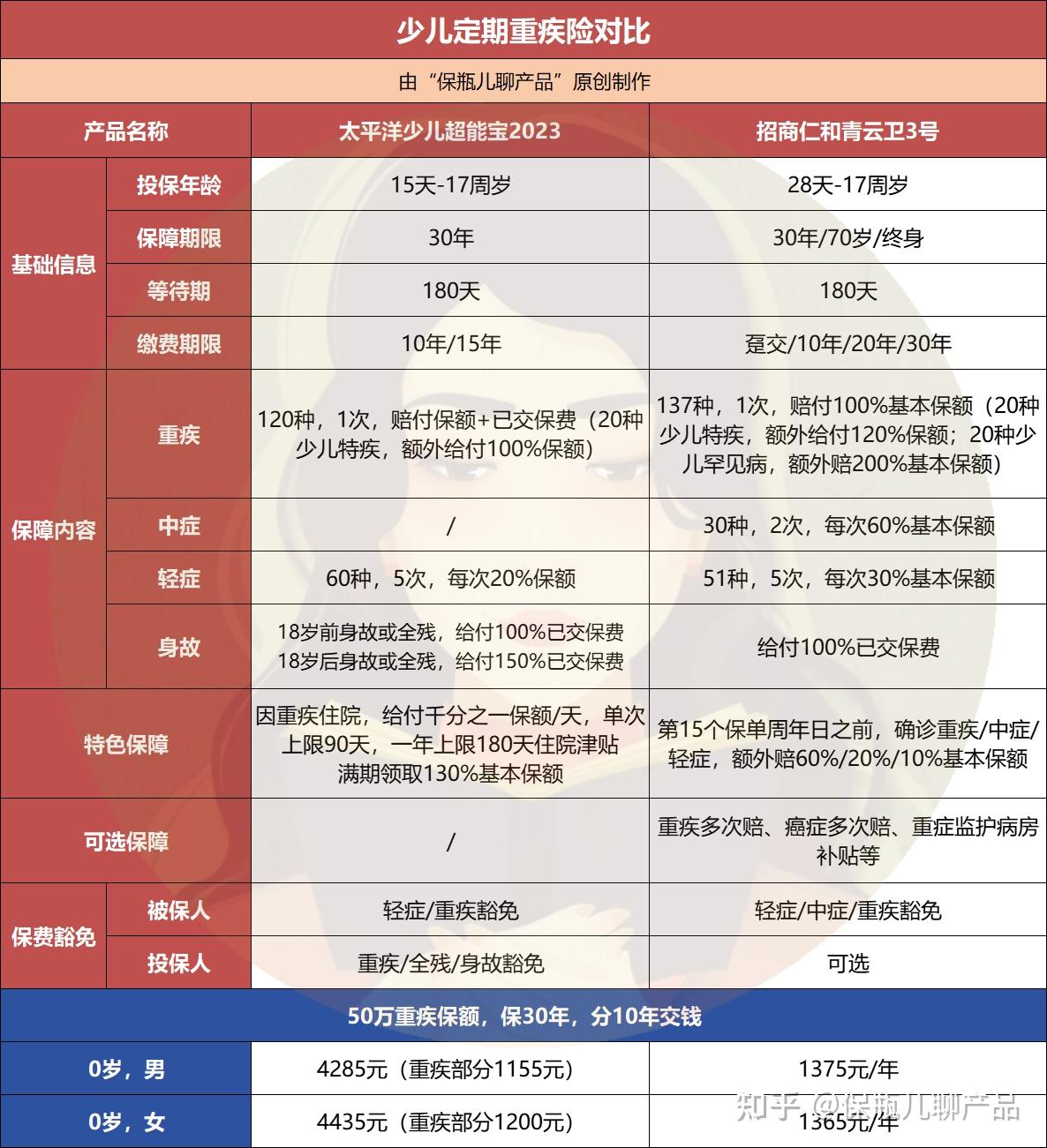 • 保额建议选 50 万或 100 万:现在少儿重疾治疗费用高,50 万是基础,一线城市建议选 100 万。
