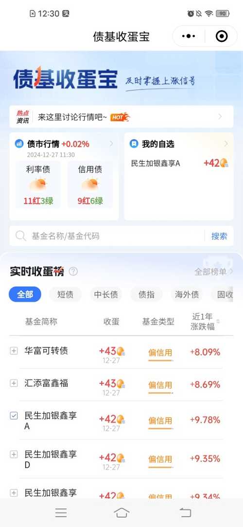 ③ 登录后,在搜索栏输 “民生加银鑫享债券 c”,找到对应基金;