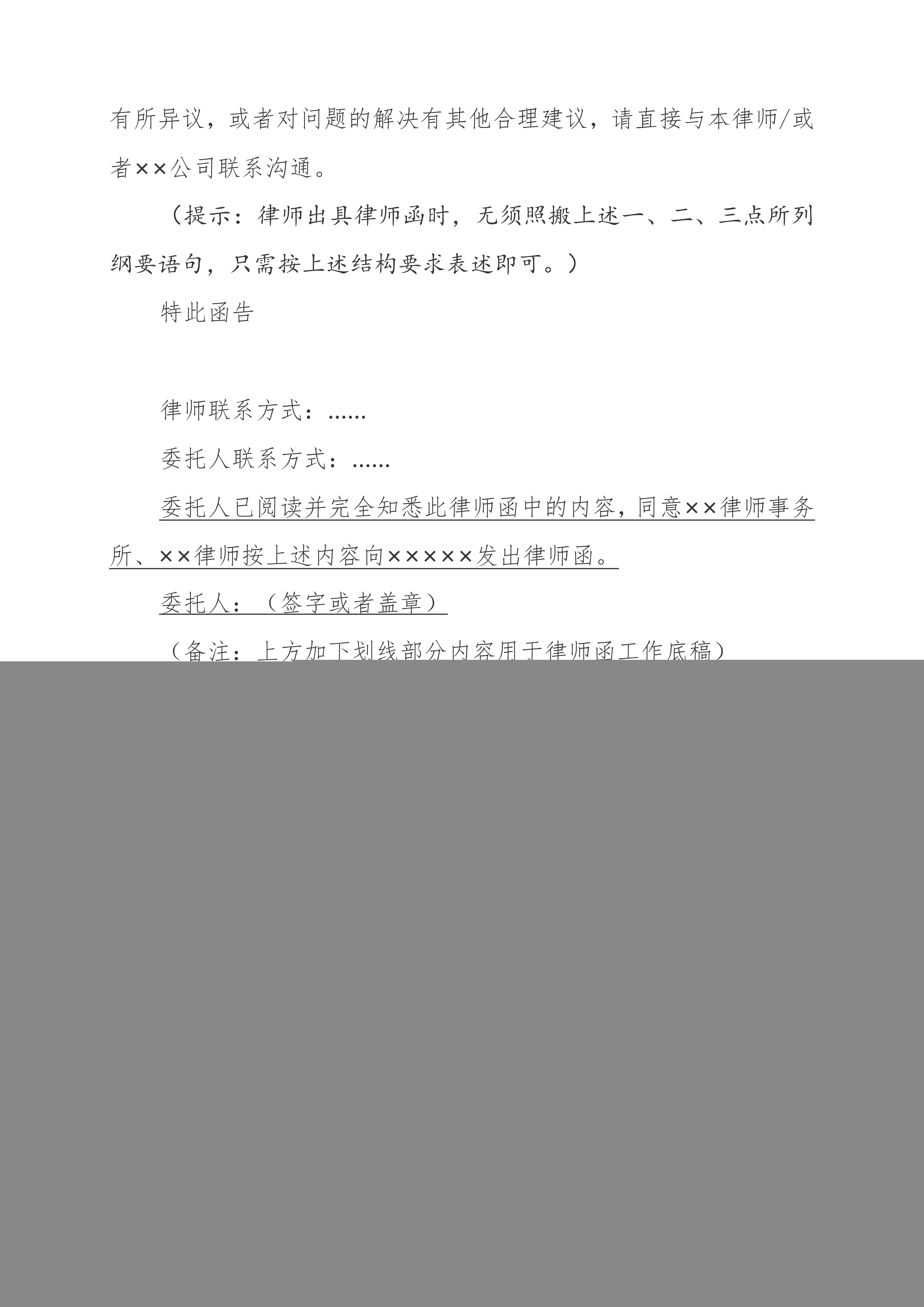 Q:结尾一定要留律师联系方式吗?A:最好留!对方有疑问或想协商时,能直接找到你,提高沟通效率,不然对方可能因为找不到对接人,一直拖着不处理,反而耽误事。